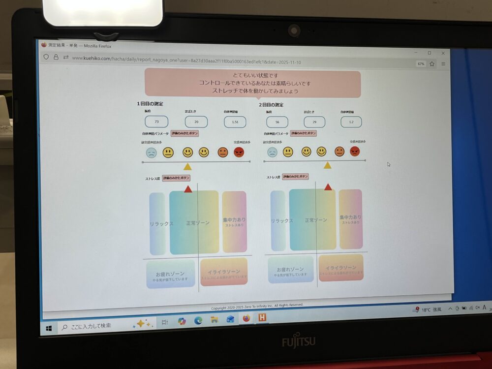 今回活用したのは、Webカメラを通じて脈拍や自律神経の状態を非接触(体に触れず)で検知するシステム「HaCha(ハチャ)」です。