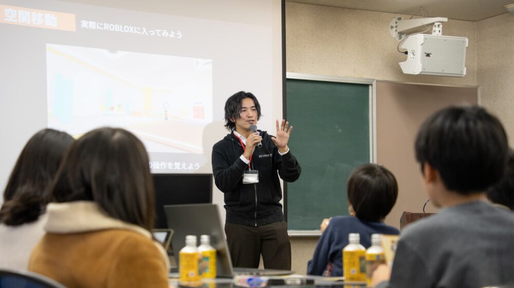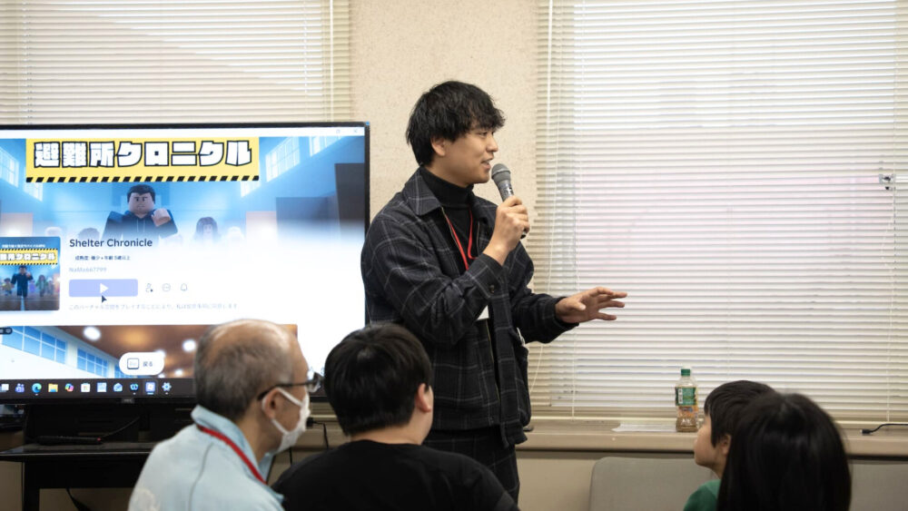 2025年12月20日、名古屋市港防災センターにて、小学4年生から中学生を中心とした子どもたちを対象に、防災啓発ゲーム「対話で進める避難所サバイバルRPG シェルタークエスト」(※イベント当時は旧ゲーム名「避難所クロニクル」)のテストプレイ・体験会を開催しました。世界的なゲームプラットフォーム「Roblox(ロブロックス)」を活用したメタバース空間と、手元の「カード」やリアルの「対話」を組み合わせた、ワークショップ形式のゲームです。