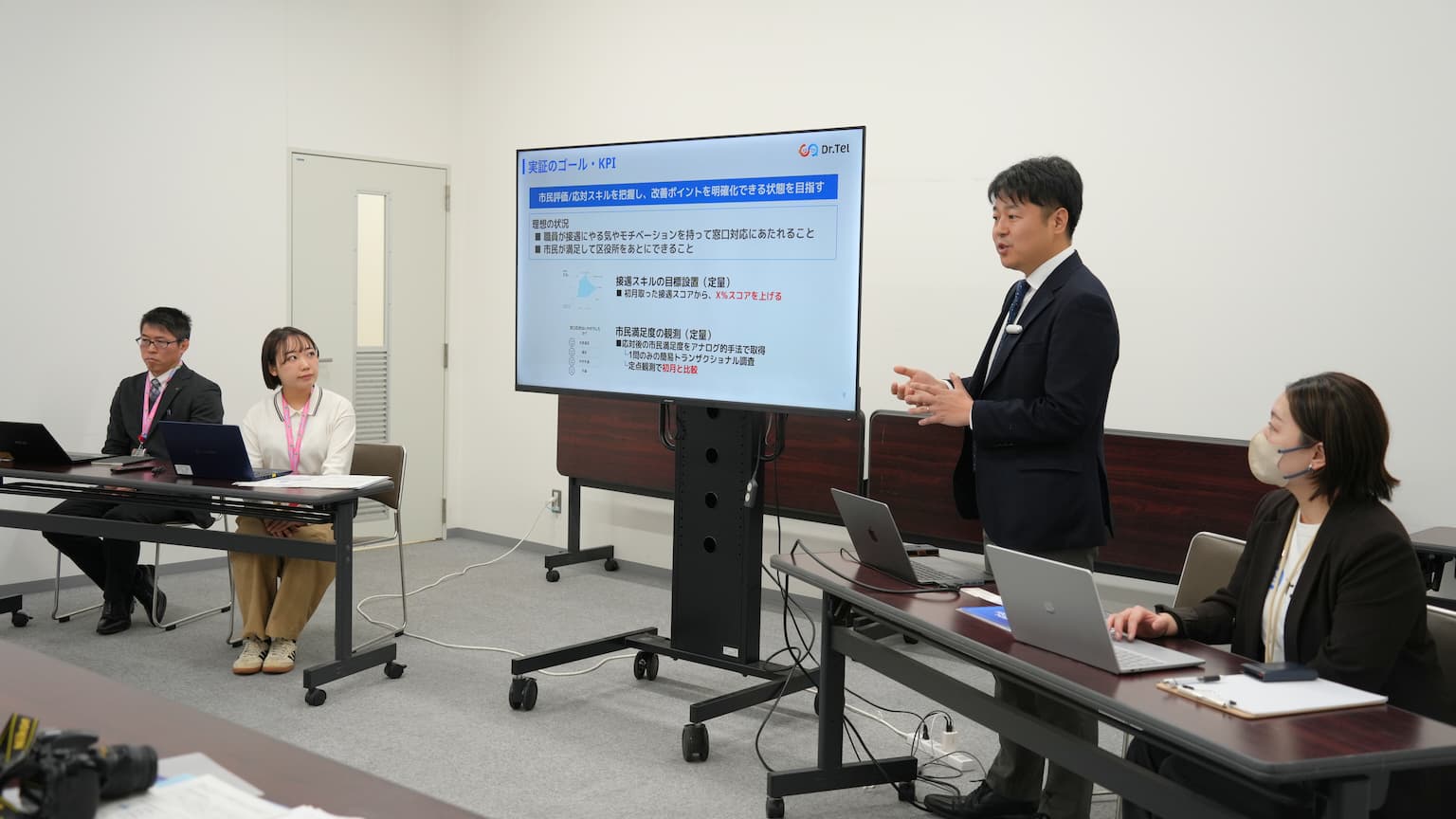 こうした現状を解決するため、本プロジェクトでは、窓口での会話を録音し、株式会社スタジアムが提供する応対品質評価AIツール「Dr.Tel(ドクターテル)」を活用。従来の録音活用といえば、トラブル防止や記録保存といった「守り」の側面が強いものでしたが、今回、録音データをAIで解析し、職員のモチベーション向上とスキルアップにつなげる「攻めのDX」を目指しました。